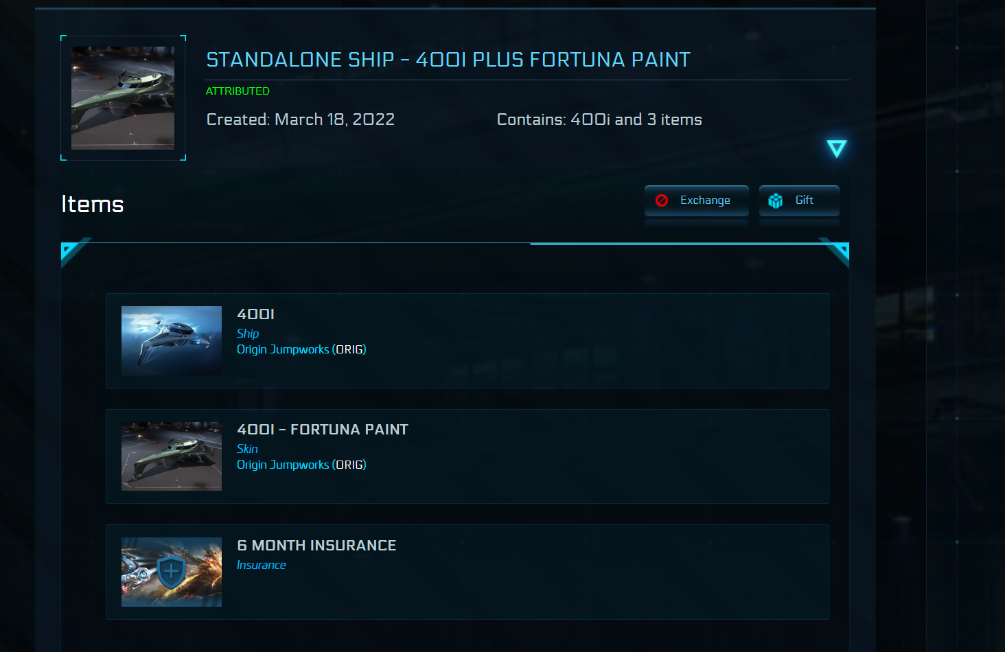 Description: 400i, very cool, very sleek, very sexy. But I need money for rent so time to sell it. Great for using to move around massive distances once the quantum drive is upgraded.