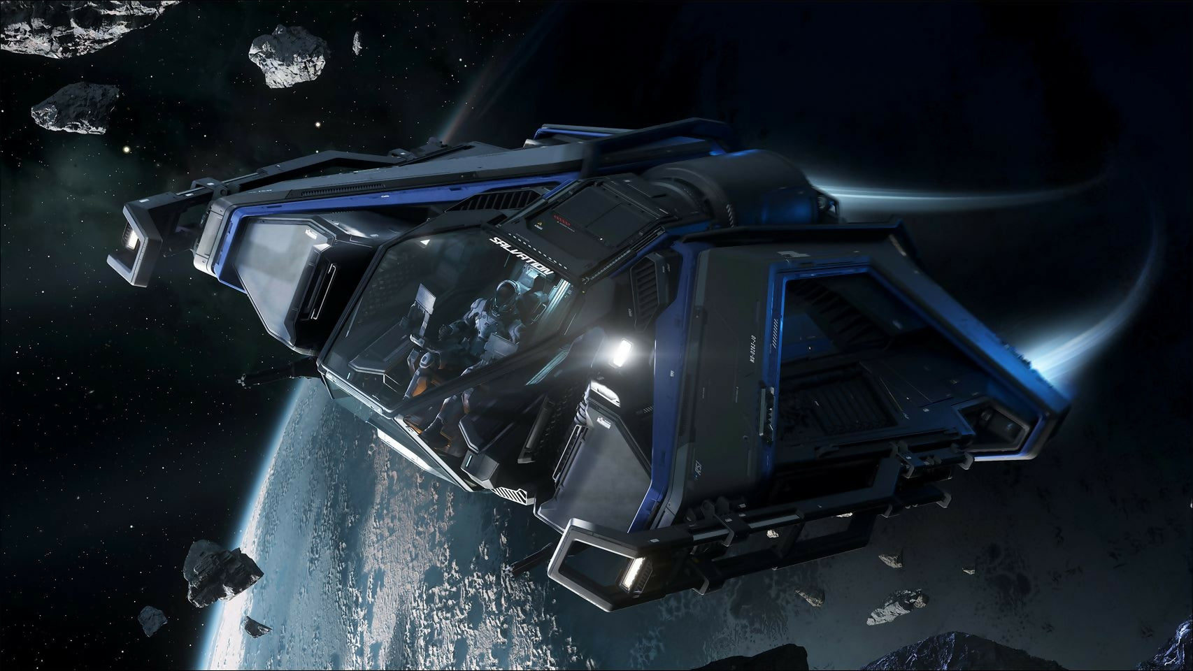 Only available during the Intergalactic Aerospace Expo (IAE), kickstart a lucrative career in deep-space salvage. Built to effortlessly tear through stranded hulls, the RSI Salvation is the ideal way to get started in the ship-wrecking game. This limited-time starter pack includes a bonus ship paint, outfit, enhanced ship insurance, and more!