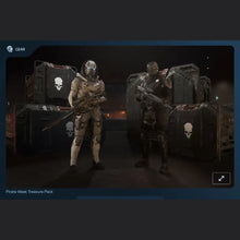 Embrace outlaw style, however you make your living in the stars, with this pirate themed treasure pack. Contains two armor sets with two matching sniper rifles, and four pirate-themed cargo containers.