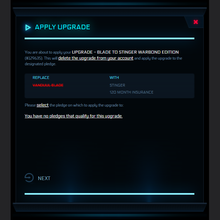 This Cross-Chassis Upgrade (CCU) converts your Vanduul Blade into the Stinger – Warbond Edition, complete with 10-year insurance to keep your investment safe for the long haul.