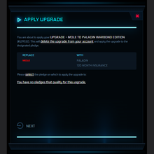 This Cross-Chassis Upgrade (CCU) converts your ARGO MOLE into the Anvil Paladin – Warbond Edition, complete with 10-year insurance coverage.