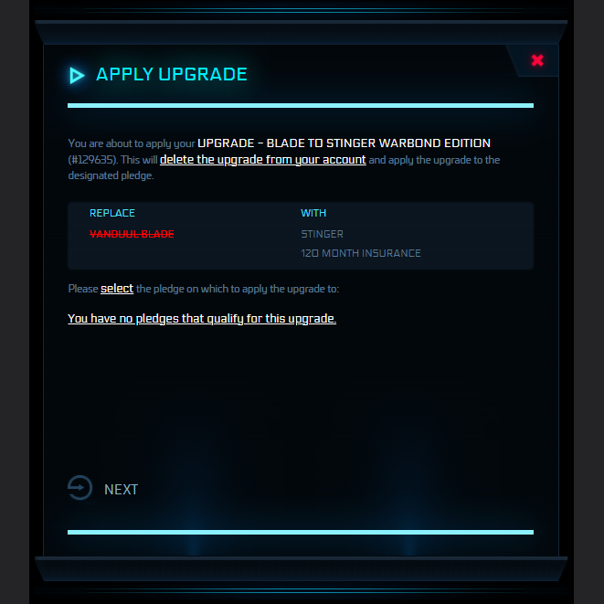 Description: 🦂 Upgrade – Vanduul Blade ➜ Stinger (Warbond Edition | 10-Year Insurance)