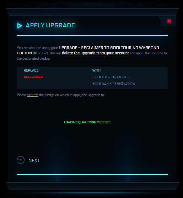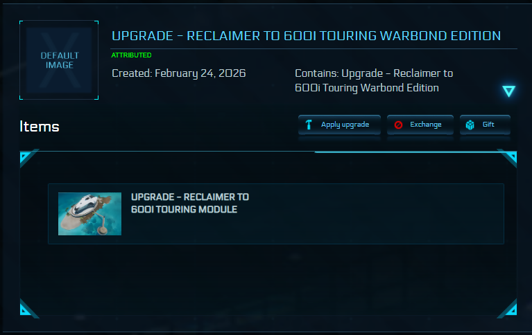 Description: The Legacy Upgrade: Reclaimer to 600i Touring + Name Reservation